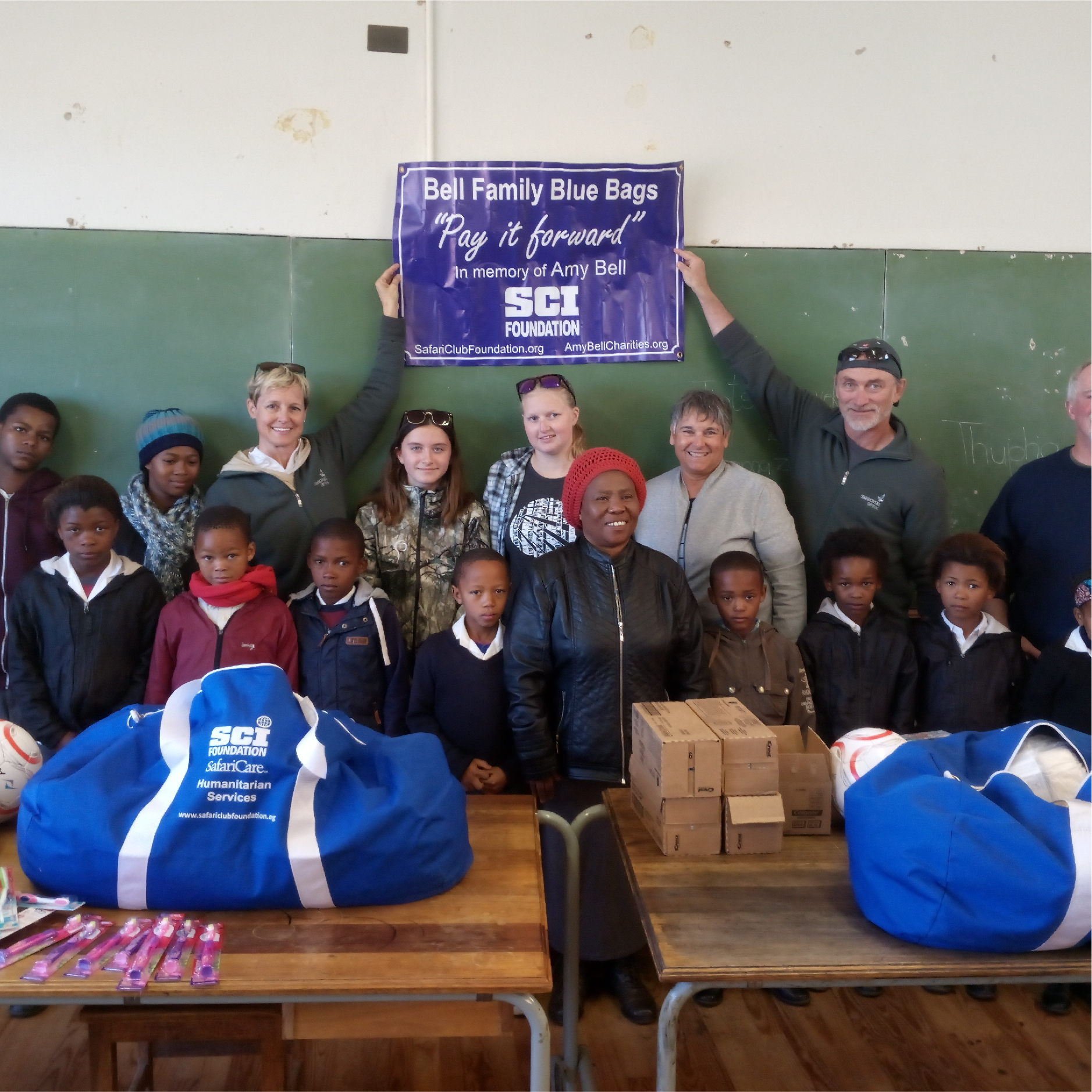 Hunters Care was born in 1996, when members from the Safari Club International (SCI) delivered mosquito nets and medical supplies to remote villages in Namibia. The idea then arose to make use of the transportation services of hunters to get supplies to isolated places around the world, places frequented by hunters. SCI and the SCI Foundation expend an enormous effort each year putting together blue bags to get school supplies, sports equipment, and other items to people in need. Gamka Safaris is proud to participate in SCI's 'Blue Bag Days' and in doing so, we hope to play a small part in uplifting and improving the lives of the children in our communities.